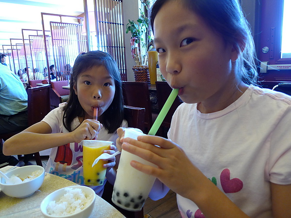 孩子們,因為舅舅請客,她媽媽說破例一人一杯飲料喝到爽!